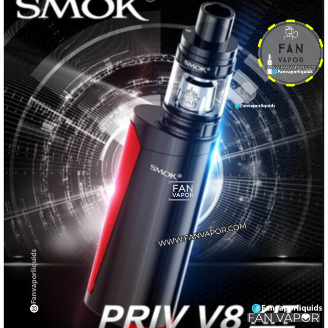 El nuevo SMOK PRIV V8 Kit consta de un Priv V8 MOD y un TFV8 Baby Tank. Su tamaño compacto proporciona comodidad para el vapeo diario. Priv V8 cuenta con una sencilla activación mediante un único botón que gestiona todas las funcionalidades, lo que facilita la experiencia de vapeo. TFV8 Baby tiene una capacidad de 3 ml y un sistema de flujo de aire suave.